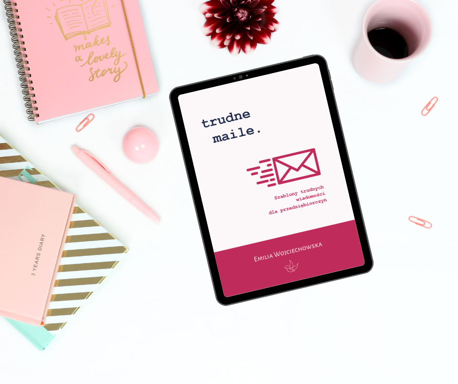 Trudne maile to złoto <3 Dodatkowo okazały się wsparciem w chwilach zwątpienia w swoje racje. Szablony są asertywne, ale empatyczne. Proste i uniwersalne, a jednocześnie szczegółowe. Dzięki temu znalazłam tu nie tylko podpowiedzi, „jak to ująć”, ale też „co zrobić”, co szczególnie docenią młode przedsiębiorczynie. Emilia przewidziała naprawdę różne sytuacje i rozwiązania! Przy okazji to świetna inspiracja, o co warto uzupełnić swoje zasady współpracy. ;) Jestem pod wielkim wrażeniem!